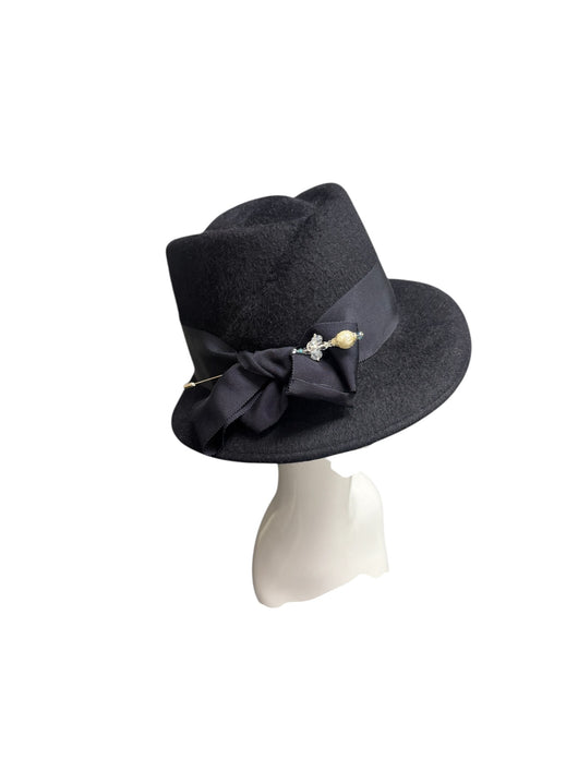 The Grace is an asymmetrical ladies' dress hat creating an eye-catching silhouette with a playful twist to the traditional hat design.  An asymmetrical ladies' dress hat is not just an accessory but an embodiment of creativity and personal expression, making it a must-have for stylish occasions.